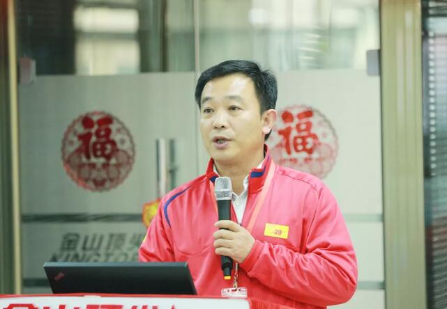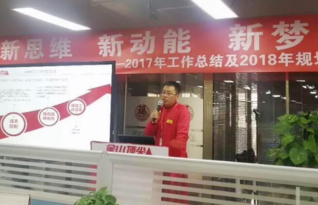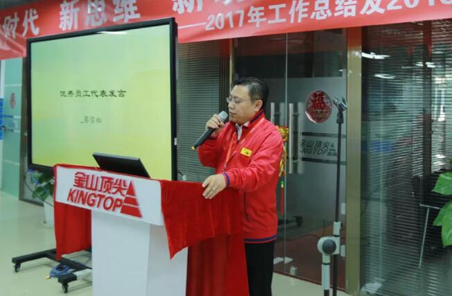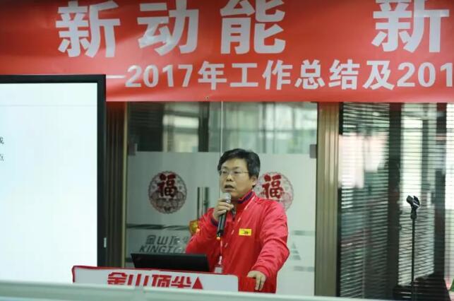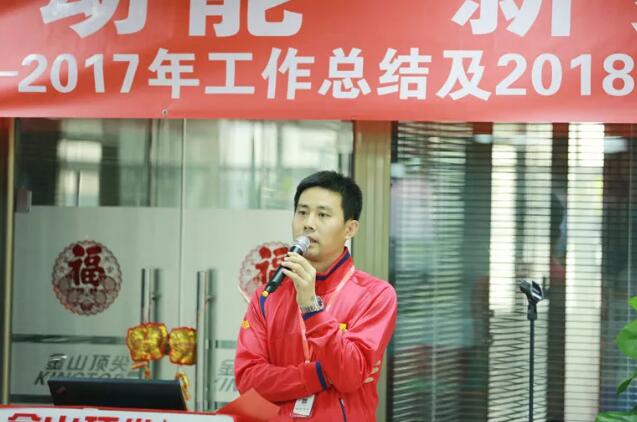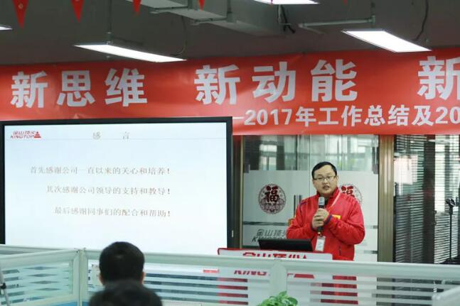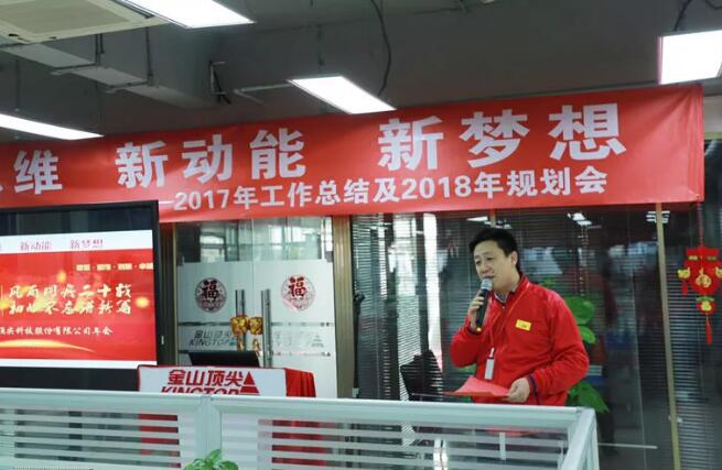 工作總結會議以”新時代 新思維 新動能 新夢想”為主題,由金山頂尖副總經理于兆海主持,作為公司2017年度的優秀銷售團隊代表蔡雪松、平臺優秀平臺團隊代表蔣伯峰、優秀老員工代表孫立成一一發言,他們對自身工作充滿熱情和干勁,緊跟公司發展步伐,肩負重托,在公司內起到重要的表率榜樣作用。公司副總經理于兆海、王敬云、劉立庚分別各自分管工作進行了總結匯報,同時,在新的一年對各自分管工作做了詳實的規劃,明確了目標和方向。