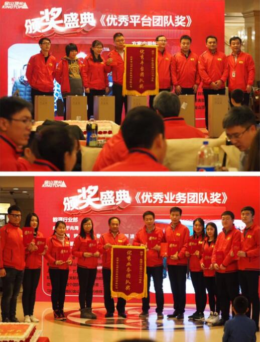 金山頂尖2017年度頒獎典禮盛大開啟,公司對2017年的優秀新員工、優秀員工、優秀團隊分別進行了表彰,總經辦領導為各位獲獎者頒發了獎杯、證書及獎金。金山頂尖于兆海副總帶領著能源行業部取得了優異的業績,被董事會授予了特別貢獻獎。一分耕耘、一分收獲,他們集中詮釋了金山頂尖不屈不撓、不畏艱難的精神!