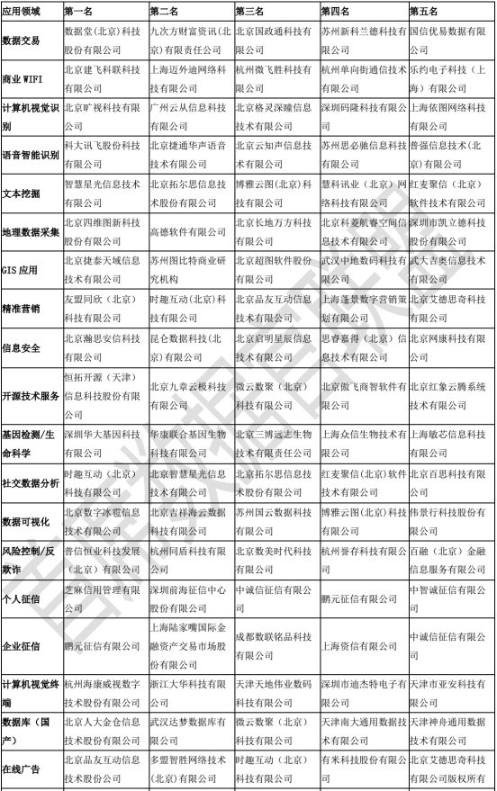2016《中國大數(shù)據(jù)企業(yè)排行榜》如下:
